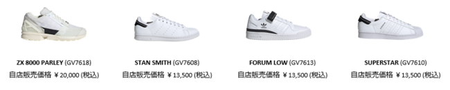 STAN SMITH(スタンスミス、SUPERSTAR(スーパースター、FORUM(フォーラム、NIZZA(ニッツァ)を含む12 足のシューズを展開いたします。