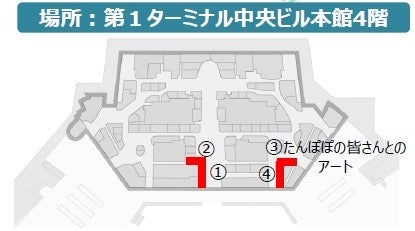 第1ターミナル中央ビル本館4階(出国手続き前エリア)にて、様々な人の出発点、到着点となる「空港」を舞台に、始まりと終わりの季節に咲く「桜」をモチーフとした4つの仮囲いアート制作をリフレクトアート株式会社*と実施しました。