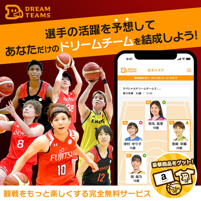 ドリームチームズは「スポーツをもっと身近に」をミッションに掲げ、2021年10月よりWリーグ(バスケットボール女子日本リーグ)と連携し、ファンタジースポーツ事業「ドリームチームズ」を運営しています。