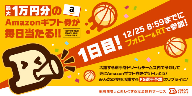 また、現在「ドリームチームズ」はクイズに答えてAmazonギフト券1万円相当が毎日当たるTwitterキャンペーンも実施中です!