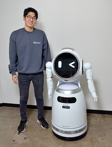 田口大悟氏と案内ロボット「Cruzr」(クルーザー)