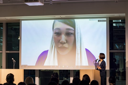 当日は在住のタンザニアとzoomを繋ぎ、オンラインで参加したDarajapanの角田弥央。プロフェッショナルアワードを受賞した。photography: Mirei Sakaki
