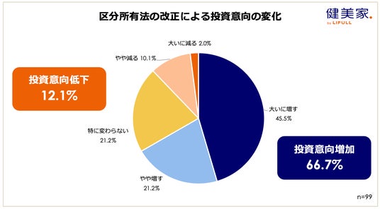 - 改正により区分マンションの投資意向は「増す」が約7割