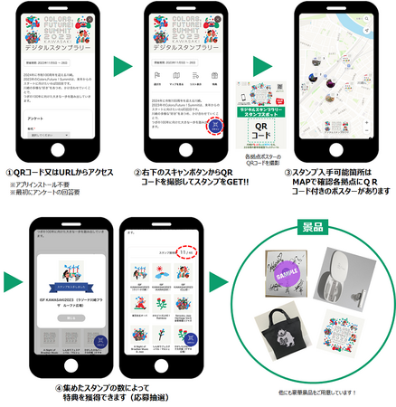 東日本電信電話株式会社 川崎支店(川崎支店長:青木 正宏、以下「NTT東日本 川崎支店」)は、川崎市市制100周年記念事業の一環として、都市型サミット「Colors, Future! Summit 2023」の製作委員会として参画し、川崎市や地域企業・大学とともに川崎の未来を共創しています。全体の企画制作を行うなかのひとつとして、今回デジタルスタンプラリーの運営も行っております。