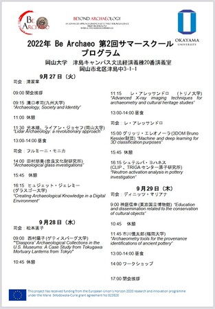 本サマースクールは、MSCA-RISE BE-ARCHAEOプロジェクトの枠組みの中で開催されます。対象者は、考古学や考古学的調査の方法論に関心のある、考古学及び関連分野の大学院生、研究者、博物館の職員です。受講者は、演習を伴う講義と最後にワークショップに参加することができます。