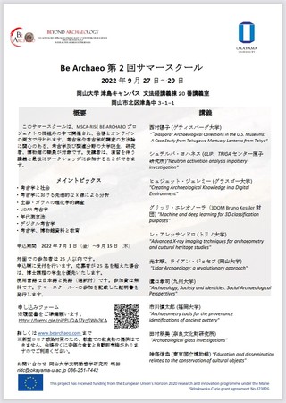 Be Archaeo 第2回サマースクールを、2022年9月27~29日に、岡山大学津島キャンパス(岡山市北区)文法経講義棟20番講義室とオンラインのハイブリッドで開催します。