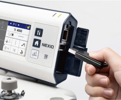 新製品「NEXIO S-7240D」では、標準釜の約2倍の容量を持つ倍釜の採用や、カラー液晶タッチパネル、針折れ防止機能の搭載などにより、高品質な縫製を維持しながら高い生産性を実現。