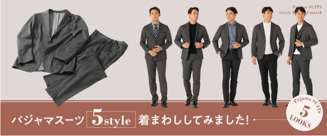 株式会社AOKI(代表取締役社長:森裕隆)は、2020年より “見ためスーツ、着心地パジャマ”をコンセプトに『パジャマスーツ(R)』を発売しており、この度、累計販売着数40万着を突破いたしました。さらなる認知拡大を図るため、コーディネートアイテムを変えるだけで、ビジネスからカジュアルまでお召しいただける『パジャマスーツ(R)』の5日間着まわし特集ページ( https://www.aoki-style.com/feature/pajama_mixandmatch/ )を新しく公開いたします。特集ページでメインアイテムとして使用している「プリントジャージ素材パジャマスーツ(R)」は、全国のAOKI店舗および公式オンラインショップにて販売しております。( https://www.aoki-style.com/feature/pajamasuit/ )