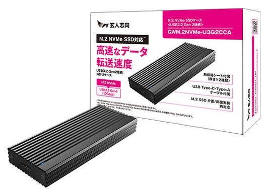 『GWM.2NVMe-U3G2CCA』は、10Gbps(理論値)の高速データ転送に対応したUSB3.2 Gen2で接続が可能なM.2 NVMe SSDケースです。