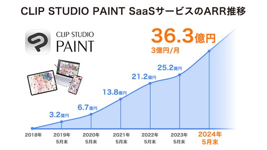 セルシスが開発・提供している、イラスト・マンガ・Webtoon・アニメーション制作SaaSサービス「CLIP STUDIO PAINT」のサブスクリプション契約売上が、2024年5月に1ヶ月で3億円を超え、過去最高となりました。ARRは36億円を超え(*1)、前年同月比のARR成長率は44%となっており、今後も売上の成長を見込んでおります。
