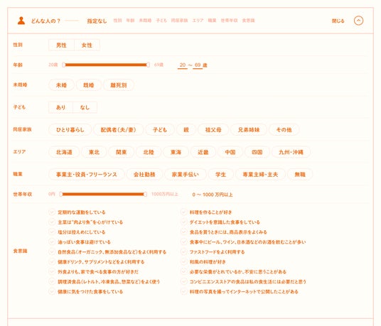 生活者の“いま”を知り、“これから”を洞察するツールとして、食生活における行動実態の把握や探索にぜひご活用ください。