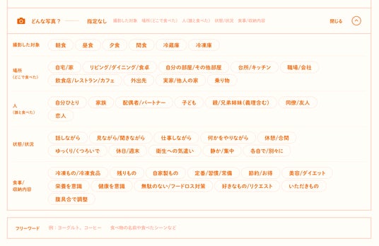 第一弾「食」を公開生活者が自ら撮影した「食」に関する約1,600枚の写真を収録。豊富な検索機能により、食生活における行動実態の把握や探索に活用可能