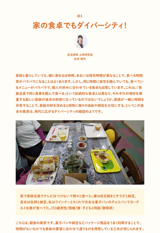 株式会社博報堂(東京都港区、代表取締役社長:水島正幸)のシンクタンクである博報堂生活総合研究所では、生活者が衣・食・住などのテーマで撮影した写真を収集・分析する「生活写真調査」を行っています。このたび、そのデータを閲覧できるサイト『生活図鑑』をオープンし、第一弾として生活の根幹である「食」を公開いたしました。