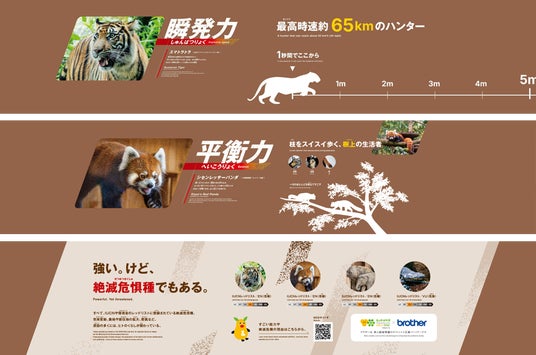 このたび、ブラザーは来園者に新たな発見や楽しみを提供するとともに、絶滅危惧種の保全活動への関心を高めるきっかけとなることを目指してフェンスに装飾を施した。今回の装飾テーマ「アジアの強者」は、スマトラトラが1秒間に走って移動できる距離を視覚的に表現するなど、アジアに生息する動物たちの高い能力やその魅力を描きながら、一方で彼らが生息地で絶滅の危機にひんしている現状を表現している。