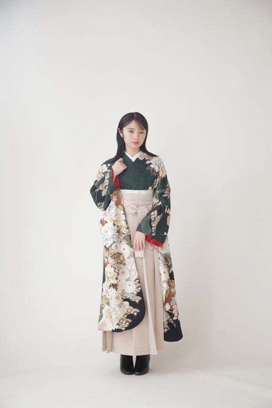 緑の振袖x新作ベージュ袴