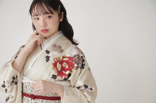 淡いベージュの振袖。