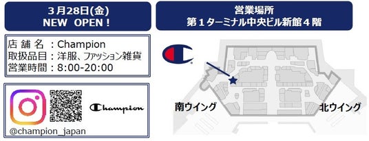 (出国手続き前エリア)に国内空港初出店となるオーセンティック アメリカン アスレチックウェア ブランド 「Champion」がオープンいたします。