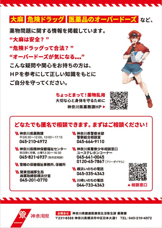 『はたらく細胞』の内容は、県の施策との親和性が高く、また、体の仕組みを分かりやすく知ることができると幅広い世代から支持され、学校現場でも若者が身近に感じる教育素材として活用されています。今回のコラボが、若い世代の皆さんにとって、「自分のからだ」や「薬物の怖さ」について自分事として考えるきっかけとなることを期待しています。
