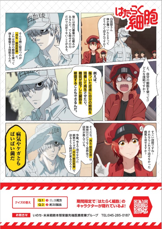 『はたらく細胞』のキャラクターが県の取組について分かりやすく紹介し、「再生・細胞医療とは何か」をマンガで伝えるチラシを作成・配布します。