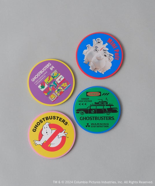 ゴーストバスターズの代表的なキャラクターやシーンがプリントされた、カラフルなラバーコースター。食卓にはもちろん、インテリアとしてもおすすめです。マグカップと合わせて贈り物にも。