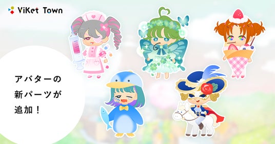 「ViKet Town(ビケットタウン)」では自分となって働くアバターが存在します。アバターには、頭、髪、目、口、服装、数種類の初期パーツから選択する事ができ、理想とする自分を生み出す事が可能です。 アバターを通してのコミュニケーションは、年齢、国籍、性別、見た目、生まれ持ったルーツによる様々な偏見をなくし、 純粋な気持ちで仲間とのプロジェクトの成功を目指す事ができます。 自分に自信がない人でも、働く新たな自分を生み出すことで、コミュニケーション能力の向上も期待でき、異空間で働くアバターは、様々なアイテムを身に着け、仲間とのコミュニケーションのきっかけともなります。今回は四つ葉のクローバーモチーフのドレスや、春の訪れを感じさせる淡いピンクカラーなどこれからの季節にぴったりのパーツが新登場!
