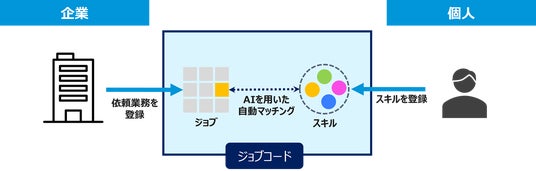 ジョブコードの活用によって「副業・フリーランス人材に依頼すべき業務の整理」を容易かつ迅速に行い、今まで以上に精度が高いマッチングを実現するとともに、従来の“職種”から、“ジョブ”を起点としたマッチングへの転換を目指します。