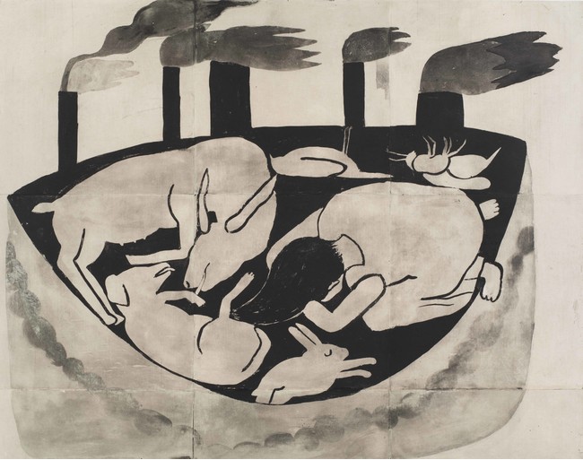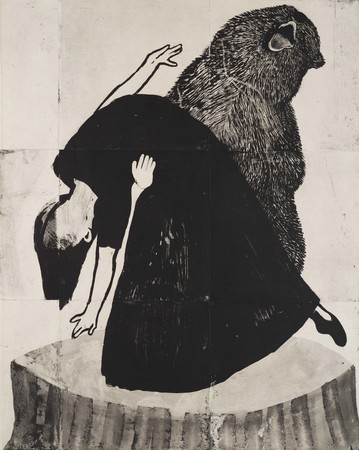 自らの制作を「銅版を傷つける」行為ととらえ、「銅版に刻まれた線は心の傷、線を埋めるインクは血、インクを載せる紙はガーゼ(包帯)」と述べる村上。その作品は、見た目の素朴さとは裏腹に、現代社会に対して作家が抱く恐れや嫌悪、欲望や愛のイメージなど、生々しい感情に裏打ちされています。犬や馬、鳥や虫などの動物がモチーフの中心になることも特徴です。動物たちは、人間を襲う脅威として描かれる一方で、痛みを分かちあう身近な存在としても登場します。村上の創作は、心の傷を描きだすと同時に、その傷を手当てする営みでもあるのです。