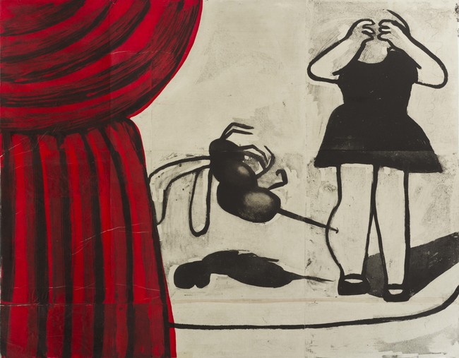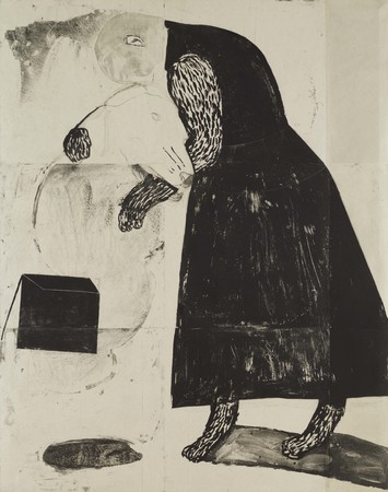 村上は、ポスターカラーを使い筆で銅版に直接描いた線を腐食させるリフトグランド・エッチングなどの技法で、自身の記憶やトラウマから生まれたモチーフを描く作家です。