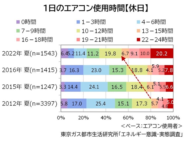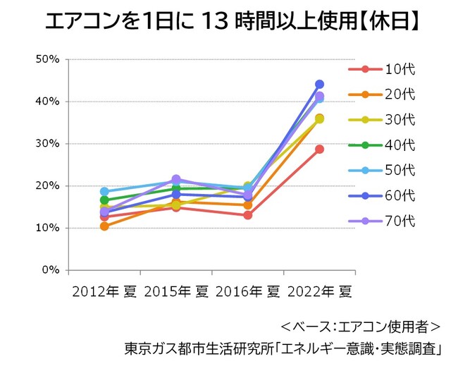 高齢層ほど長時間利用が多く、熱中症対策のために冷房を切らずに使用している人もいると思われます。
