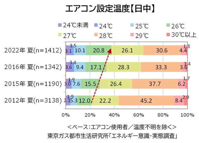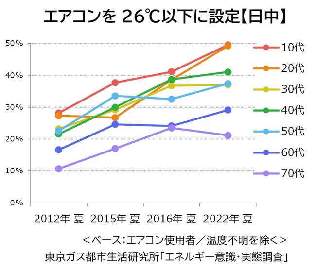 若年層を中心に、冷房の設定温度は「26℃以下」が増加
