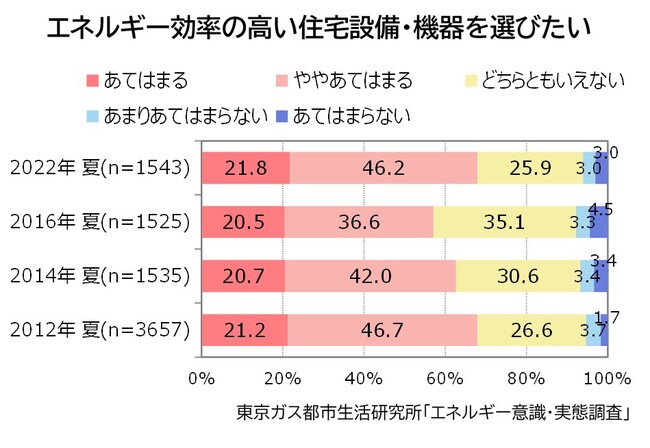 できるだけ我慢をせずに省エネに取り組めることが求められており、「エネルギー効率の高い住まいや機器を選ぶ」意向も高まっています。