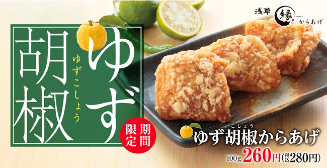 テイクアウトのからあげ専門店「からあげ縁-YUKARI-」にて、秋の期間限定メニュー「ゆず胡椒からあげ」を2023年9月22日(金)より販売開始いたします。
