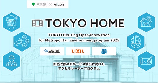日本最大級のオープンイノベーションプラットフォーム「AUBA(アウバ)」を運営する株式会社eiicon(エイコン 本社所在地:東京都文京区後楽、代表取締役社長:中村 亜由子、以下「eiicon」)は、東京都環境局とともに実施する、断熱改修の新サービス創出を目指す『TOKYO Housing Open-innovation for Metropolitan Environment program 2025「TOKYO HOME」(以下 本プログラム)』 にて、昨年11月から12月にかけて募集した、参画サッシメーカー(ホスト企業)3社「三協立山株式会社」「株式会社LIXIL」「YKK AP株式会社」の新サービス創出等に向けたテーマに基づくスタートアップ(パートナー企業)について、多数の応募の中から厳正に選考を実施し、このたび3つの共創プロジェクトを採択したことをお知らせします。