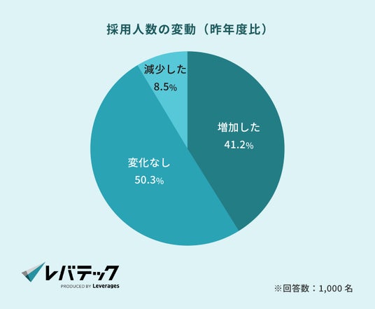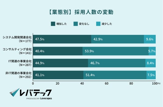 今回の調査では、4割以上の企業が「昨年より採用数を増やした」と回答しました。AIの普及により一部では人員削減に踏み切る企業も見られる一方で、IT人材の採用市場全体では、むしろ採用競争が激化していることが明らかになっています。