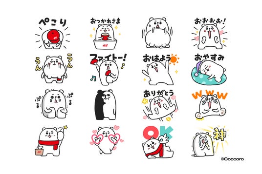 本アニメーションスタンプは、「ぷるくまさん」などの人気キャラクターを生み出しているクリエイター「こっころ」によって作成されたもので、全16個にて展開されます。トークルームを盛り上げてくれる癒し系キャラクターぷるくまさんのアニメーションスタンプと、H&Mのアイテムを着用しているコラボならではのぷるくまさんをお楽しみいただけます。多様なシーンで活躍するスタンプとなっておりますので、ぜひご活用ください。