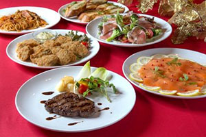 牛フィレ肉のステーキをメインに、サラダ・スープ・オードブルがビュッフェスタイルになった、スペシャルディナー。 食前酒、デザート、アフタードリンクもついたフルコースです。1000万ドルの夜景を眺めながらロマンティックなひとときをお過ごしいただけます。