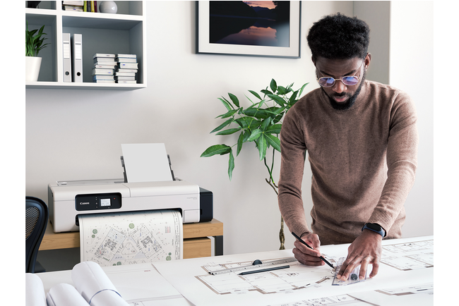働き方の急速な多様化により、複数の場所で仕事を行う分散業務が広がっています。これに伴い、建設・設計・測量用途の図面出力においても、自宅などの限られたスペースで、オフィスと同様にA1サイズの等倍印刷やA3サイズの縮小印刷ができる大判プリンターへのニーズが高まっています。新製品“TC-20”は、机や棚に置いて使えるコンパクトなデスクトップ大判プリンターです。最大A1ノビ幅のロール紙に対応するとともに、A3サイズの用紙を連続印刷できるオートシートフィーダー(ASF)を標準搭載しています。シンプルな操作で印刷できる無料のソフトウエアソリューションに対応し、上位機種(※1)と同等の使い勝手を実現します。