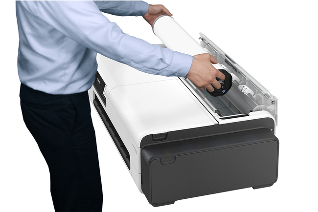 在宅ワーカーの大判プリントニーズに応える省スペース設計で、机や棚などに置いて使えるトップクラスのスリムな筐体(きょうたい)(※2)を実現しています。さらに、用紙のセットやインクの補充など、印刷に関わる全ての操作を本体前面から行うことができます。ロール紙内に通していたシャフトをなくし、狭い場所でも交換可能なロールホルダーを新たに採用することで、大判プリンターになじみのないユーザーでも簡単にロール紙をセット可能です。