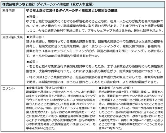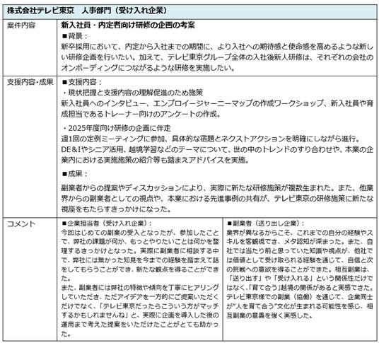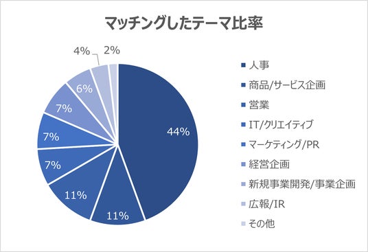 案件の傾向として、人事領域(社員育成・組織開発)の割合が多く、商品・サービス企画、営業などのテーマで相互副業が進んでいます。(右図参照)