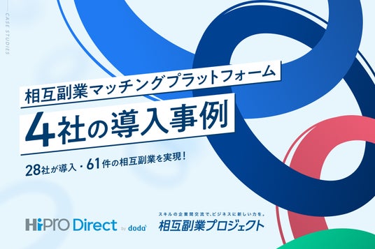 パーソルキャリア株式会社の副業・フリーランス人材 マッチングプラットフォームサービス「HiPro Direct」は、企業間での相互副業をプラットフォーム上で実現する「相互副業マッチングプラットフォーム」の提供を2024年10月に開始し、これまでにテレビ東京や三井情報、明治ホールディングス、ゆうちょ銀行をはじめとする28社・61名のマッチングが誕生※1したことをお知らせいたします。