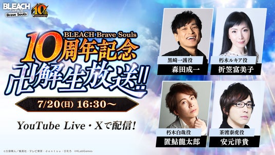 森田成一さん、折笠富美子さん、置鮎龍太郎さん、安元洋貴さんが出演!「BLEACH Brave Souls 10周年記念 “卍解” 生放送!!」が7月20日(日)16:30頃より配信