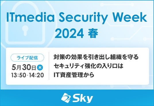 Sky株式会社は、5月27日(月)~6月3日(月)に開催される、ITmedia主催のライブ配信セミナー「ITmedia Security Week 2024 春」に協賛いたします。