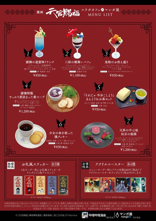 株式会社TORICO(本社:東京都千代田区、代表取締役社長:安藤拓郎)は、漫画「天官賜福」コラボカフェを2025年1月17日(金)から2月2日(日)まで同社が運営する東京・池袋の「マンガ展 池袋」にて、また2025年3月28日(金)から4月20日(日)に大阪谷町の「マンガ展 大阪」にて開催いたします。