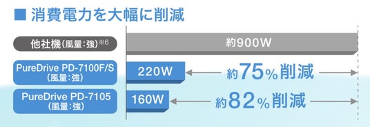 従来モデルのPD-7100シリーズのパワフルな風量を活かしつつ、ダクト形状に比べて稼働音を低減。