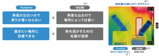 排気熱風レスなので、周囲が暑くならない(PD-7105にも共通)