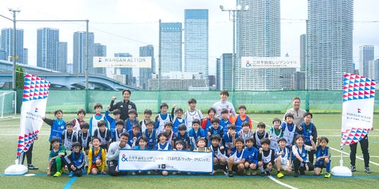 三井不動産レジデンシャル株式会社(本社:東京都中央区 代表取締役社長:嘉村 徹、以下「三井不動産レジデンシャル」)は、三井不動産株式会社(本社:東京都中央区、代表取締役社長:植田 俊)がメジャーパートナー契約を締結し、街づくりパートナーとして支援している公益財団法人日本サッカー協会(所在:東京都文京区 会長:宮本 恒靖、以下「JFA」)の協力の下、 2025年5月31日(土)に、サッカー日本代表選手の田中 碧選手、藤田 譲瑠チマ選手、元サッカー日本代表 福西 崇史さんを迎え、約100名の小学生の子どもたちを対象に「日本代表サッカークリニック(以下、本イベントという。)」をMIFA Football Park 豊洲にて開催しました。
