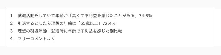 ・経験豊富な人に対して、面接すらしてもらえない状況を無くして欲しい。人柄やキャリアをもっともっと見てほしい(70代:今は働いていない)