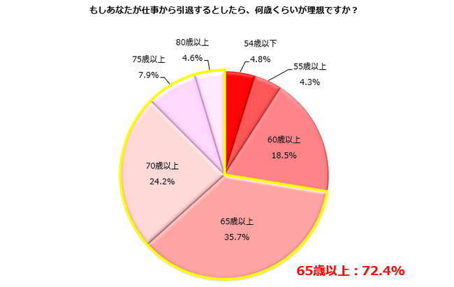 2.引退するとしたら理想の年齢は「65歳以上」72.4%