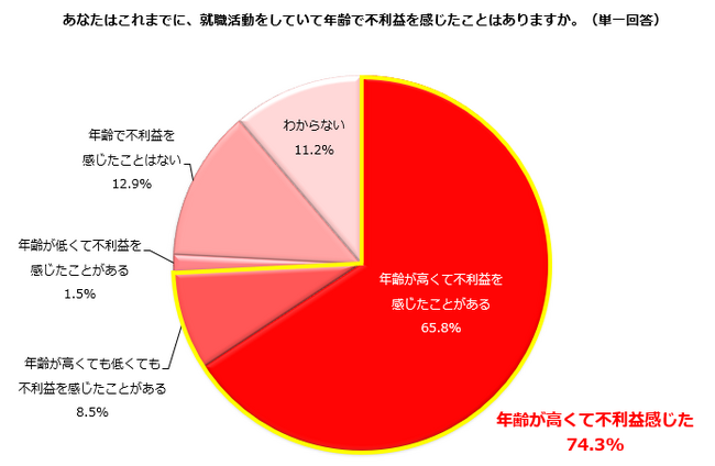 1.就職活動をしていて年齢が「高くて不利益を感じたことがある」74.3%