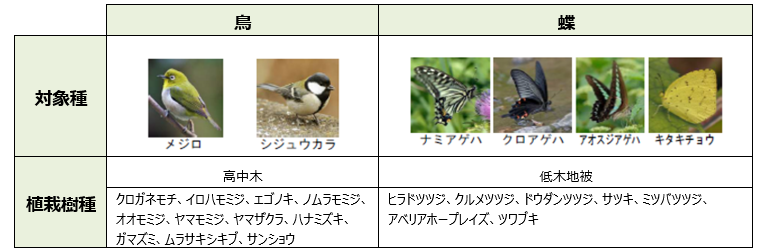 【配慮対象とした鳥や蝶の種と、それらが好む植栽樹種】